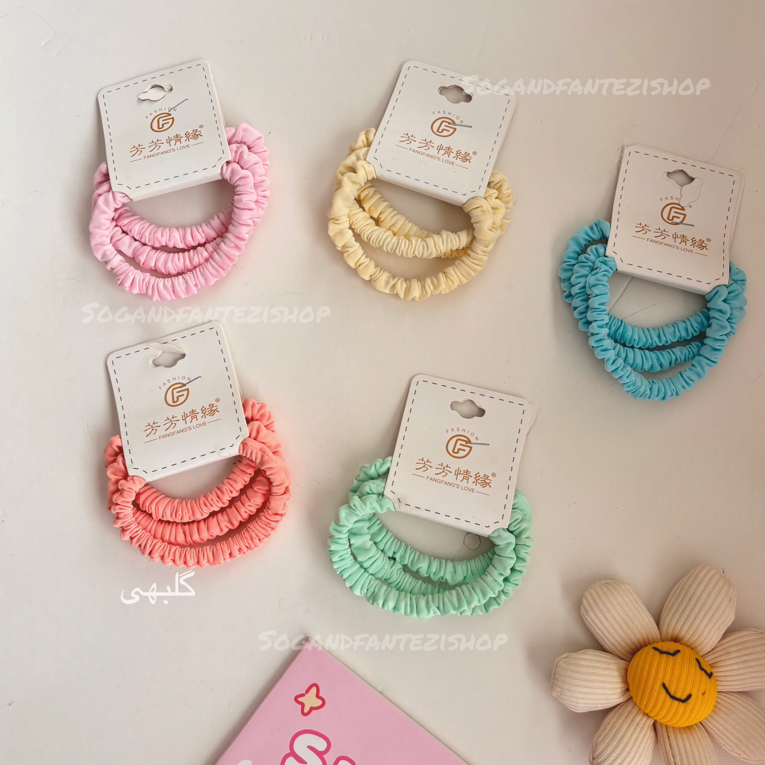 سه عدد کش مو با رنگ پاستلی در یک کارت